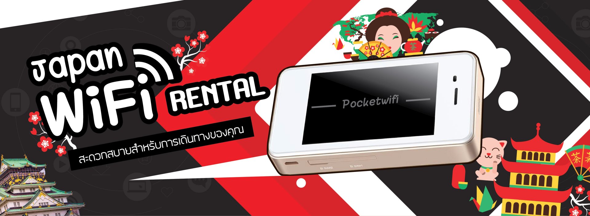Pocket WiFi เป็นตัวช่วยในการแชร์อินเทอร์เน็ต ไม่ต้องใช้โทรศัพท์สมาร์ทโฟนในการแชร์อินเทอร์เน็ตกันโดยตรง ก็จะช่วยแก้ปัญหาในเรื่องการเปลืองแบตเตอรี่โทรศัพท์ได้เป็นหนึ่งในผู้นำด้านการบริการอินเตอร์เนตสำหรับต่างประเทศ และ เป็นผู้ให้บริการอินเตอร์เน็ตไร้สายความเร็วสูง ครอบคลุมพื้นที่การใช้งานในหลายประเทศทั่วโลก ด้วยเครือข่ายคุณภาพ สัญญานอินเตอร์เนตที่ครอบคลุม และมีความคุ้มค่า จึงทำให้เป็นที่ยอมรับของตลาด และ ครองใจในด้านการบริการมาจนถึงในปัจจุบัน Pocket WiFi เป็นมากกว่าสินค้า ให้มากกว่าบริการ... ใส่ใจการบริการ และสร้างความมั่นใจให้แก่ลูกค้าทุกท่าน เพื่อให้ได้รับการบริการที่ดีที่สุด