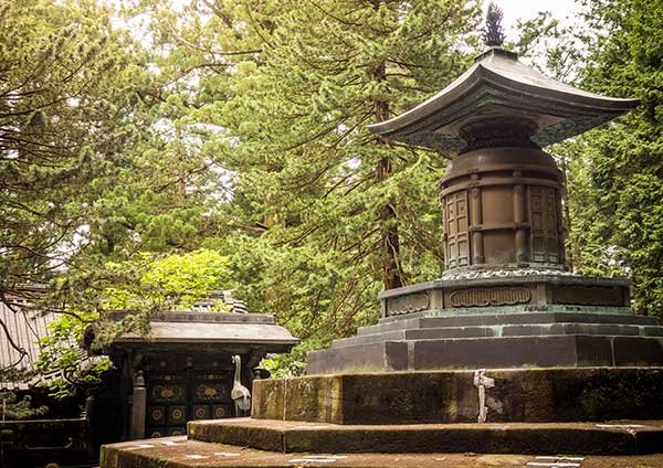 จากภาพแกะสลักแมวหลับ มีบันไดเดินขึ้นเขาสู่สุสานที่ฝังร่างของโชกุนอิเอะยาสุ โทกุกาว่า ผู้ก่อตั้งเมืองเอโดะให้เป็นเมืองหลวงใหม่ (โตเกียว) จริง ๆ แล้วท่านโชกุนนั้นเกิดในเขตคันไซ ทางตอนกลางของญี่ปุ่น.